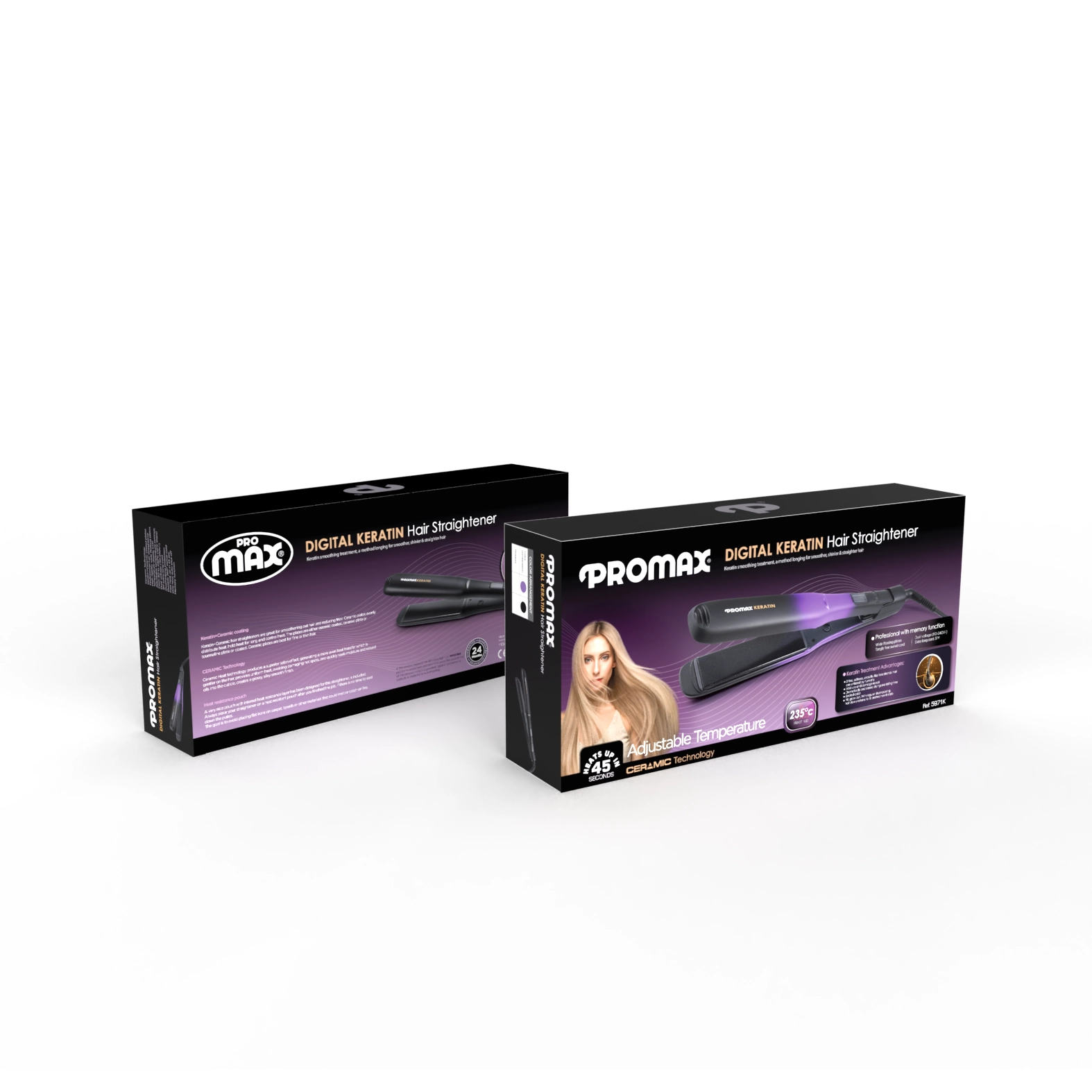 اتو موی پرومکس مدل 5971K از سری اتوهای کراتین پرومکس است که با ویژگی های منحصر بفرد خود، زیباترین مدل های مو را برای شما خلق کرده و بهترین دستیار شما برای کراتین کردن مو می باشد. پهنای صفحات این مدل اتو مو 38 میلی متر است که در مقایسه با اتو های عادی پهن تر است و در نتیجه فرایند صاف کردن و یا کراتین کردن مو را تسریع می بخشد.
